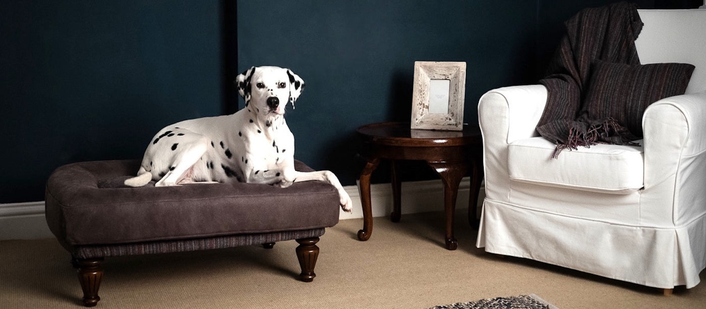 Our raised luxury dog beds are designed for optimal comfort how ever the dog wishes to lie. There are a wide selection of fabrics to choose from. All are designed with removable machine washable covers that are truly practical as well as being glorious to live with.